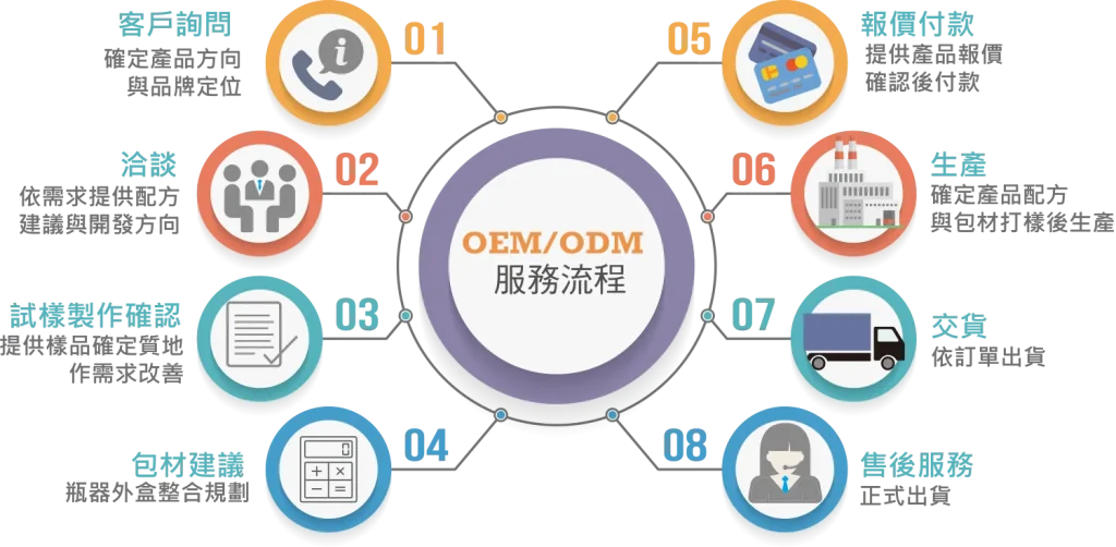 在產品方向、配方與包材確認後,即可提供完整報價與預估交期。