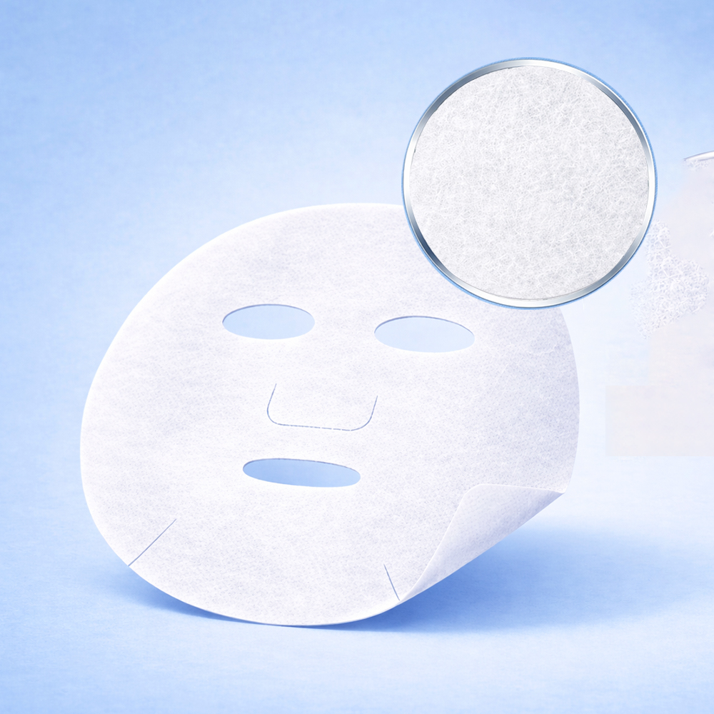 乾式生物纖維面膜紙以高密度網狀纖維結構為核心,纖維細緻且排列緊密,使面膜於敷用時能貼合臉部肌膚曲線。乾式設計可於使用前搭配不同精華液浸潤,提升產品應用彈性,適合作為高端面膜與客製化面膜產品基材。