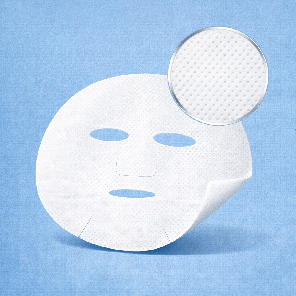可溶性面膜紙以水溶纖維結構為設計核心,於接觸精華液或水分後,材質可逐步轉化為柔軟貼膚狀態。其特殊結構在敷用過程中可貼合肌膚表面,並維持均勻分佈的使用狀態,適合作為創新型與高端面膜產品基材。
