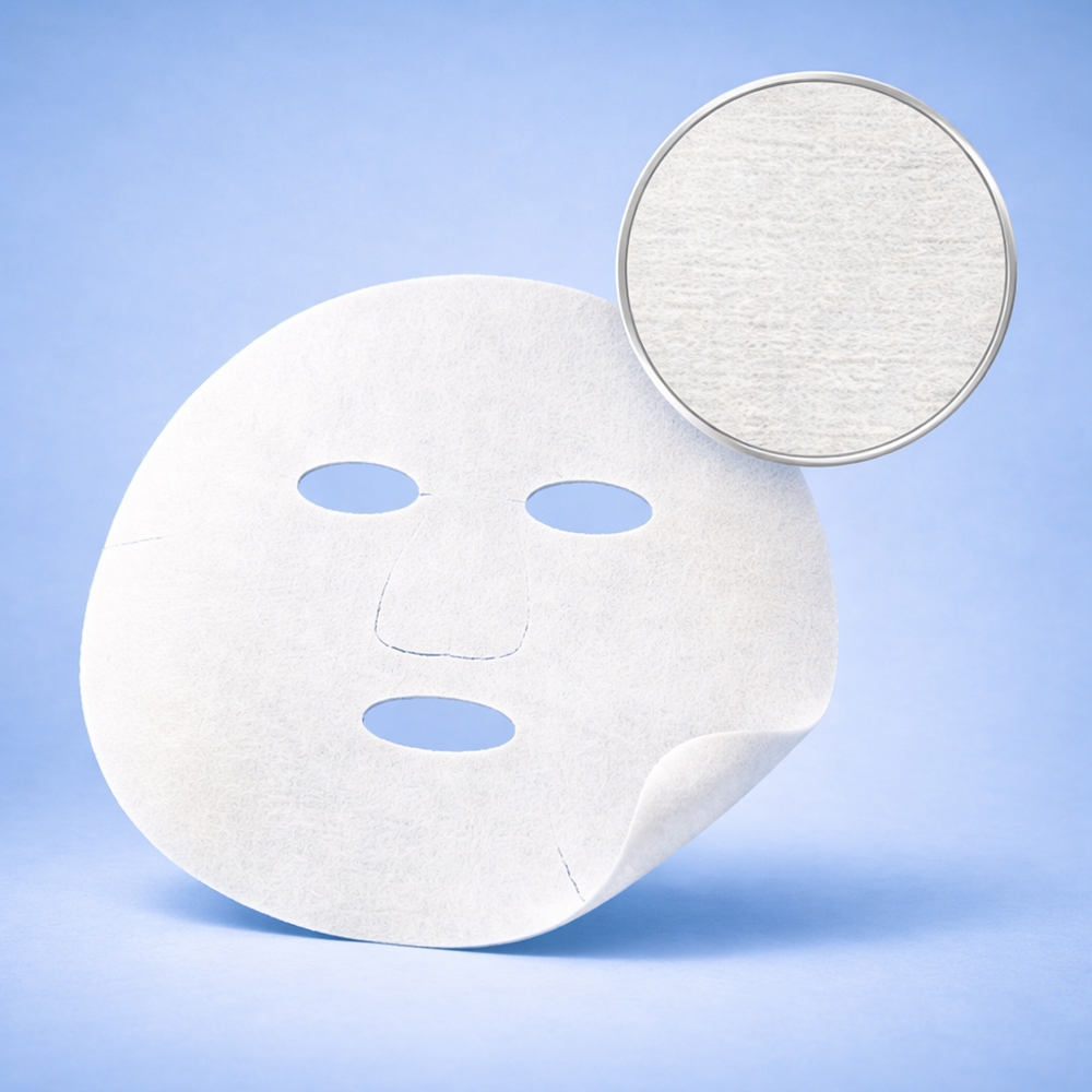 微彈超細綿面膜紙以細緻纖維與彈性結構為設計核心,纖維排列緊密且柔軟,使面膜於敷用時可貼合臉部肌膚曲線。其微彈特性能隨臉型延展,減少面膜與肌膚之間的空隙感,適合作為高服貼型與舒適型面膜產品基材。