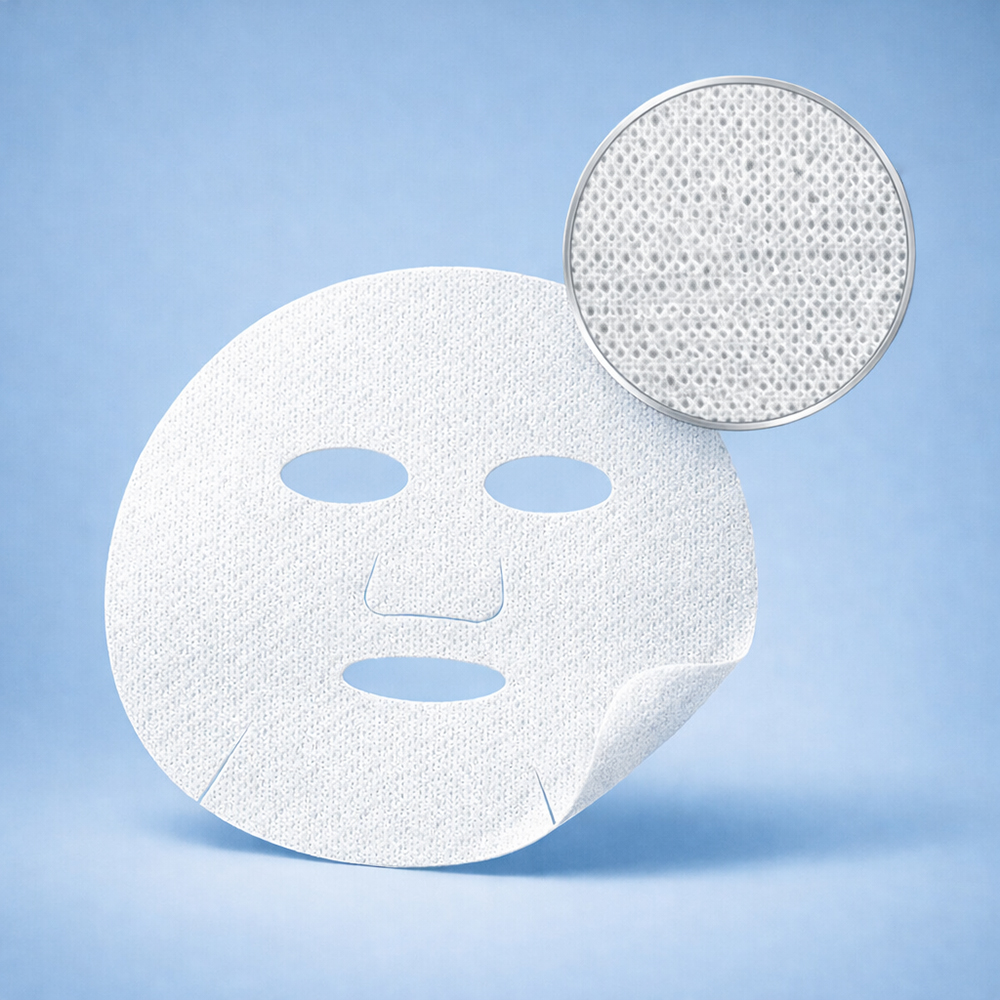 隱形面膜紙以極細纖維與超薄結構為設計核心,使面膜於敷用時能貼合臉部肌膚曲線,呈現輕透貼膚狀態。其材質在維持輕薄感的同時,具備良好精華承載能力,適合作為高端面膜與醫美通路產品基材。